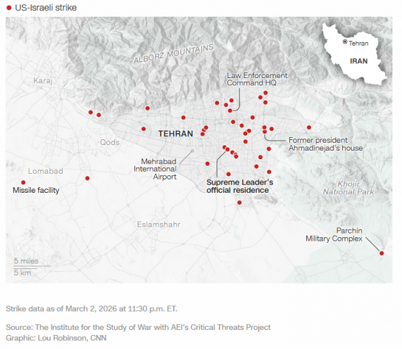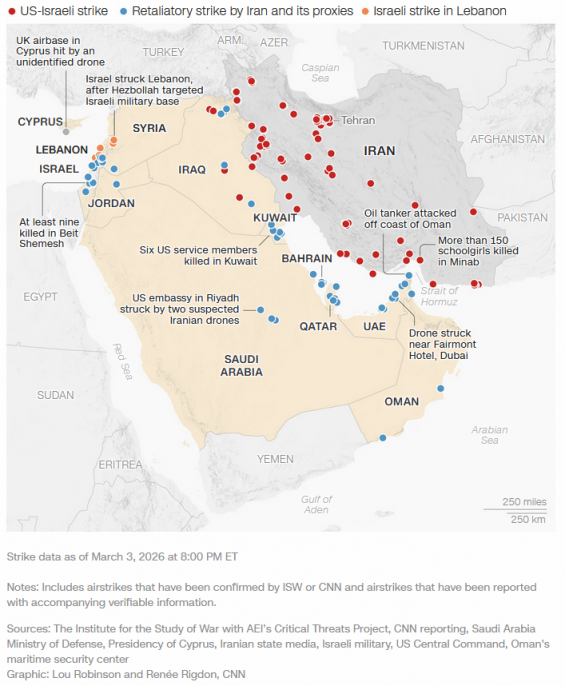 Strikes across the Middle East since Feb. 28
