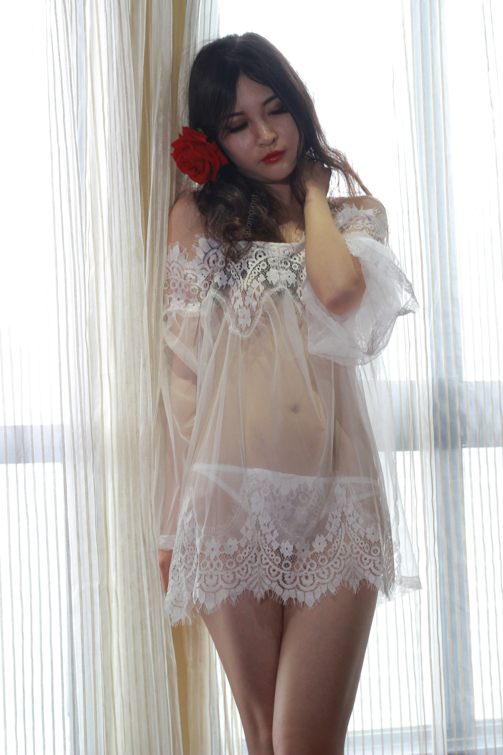 [亚洲] 白纱衣下的美妞[48P]